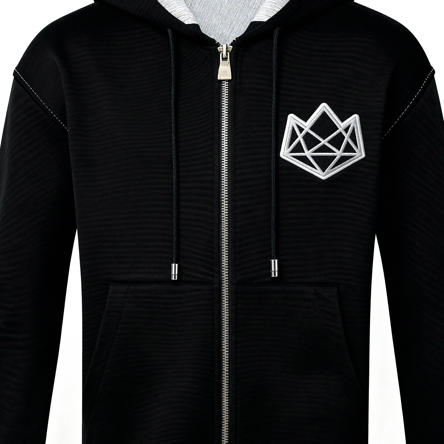 The raised embroidered crown logo on the chest delivers a bold yet refined statement, while the woven C8K neck label reinforces the attention to detail found in true high-end garments. Finished with a full silver metal zipper, ribbed cuffs, and a lined hood, every element is designed to feel substantial and intentional.